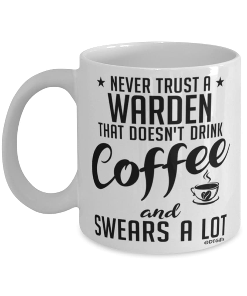 Funny Warden Mug Never Trust A Warden That Doesn't Drink Coffee and Swears A Lot Coffee Cup 11oz 15oz White