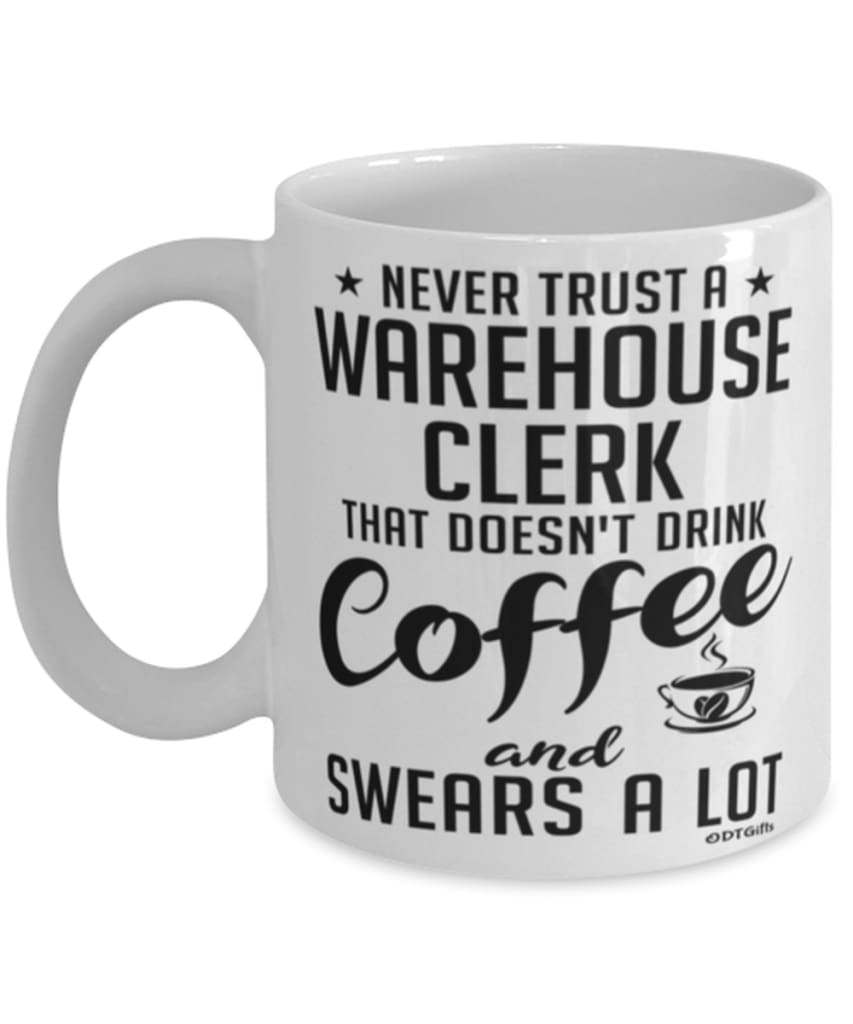 Funny Warehouse Clerk Mug Never Trust A Warehouse Clerk That Doesn't Drink Coffee and Swears A Lot Coffee Cup 11oz 15oz White