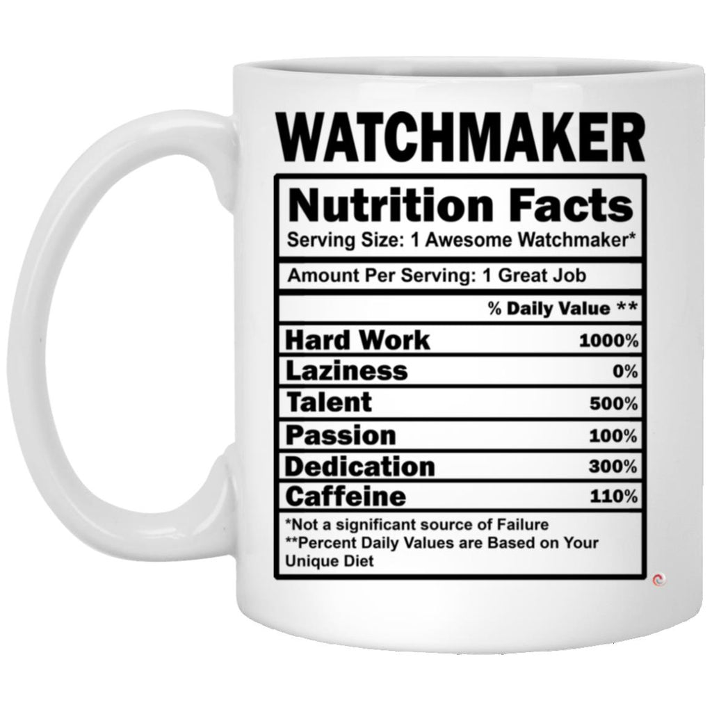 Funny Watchmaker Mug Watchmaker Nutrition Facts Coffee Cup 11oz White High quality white gloss 11oz ceramic mug Dishwasher safe & Microwave safe Top-to-bottom full wrap dye sublimation AAA ORCA Coating™ for maximum print vibrancy & longevity...