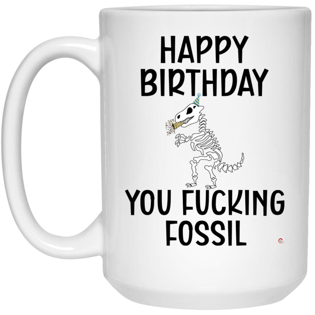 ODDITEES Funny Birthday Mug Happy Birthday You Fcking Fossil Coffee Cup 15oz White 21504