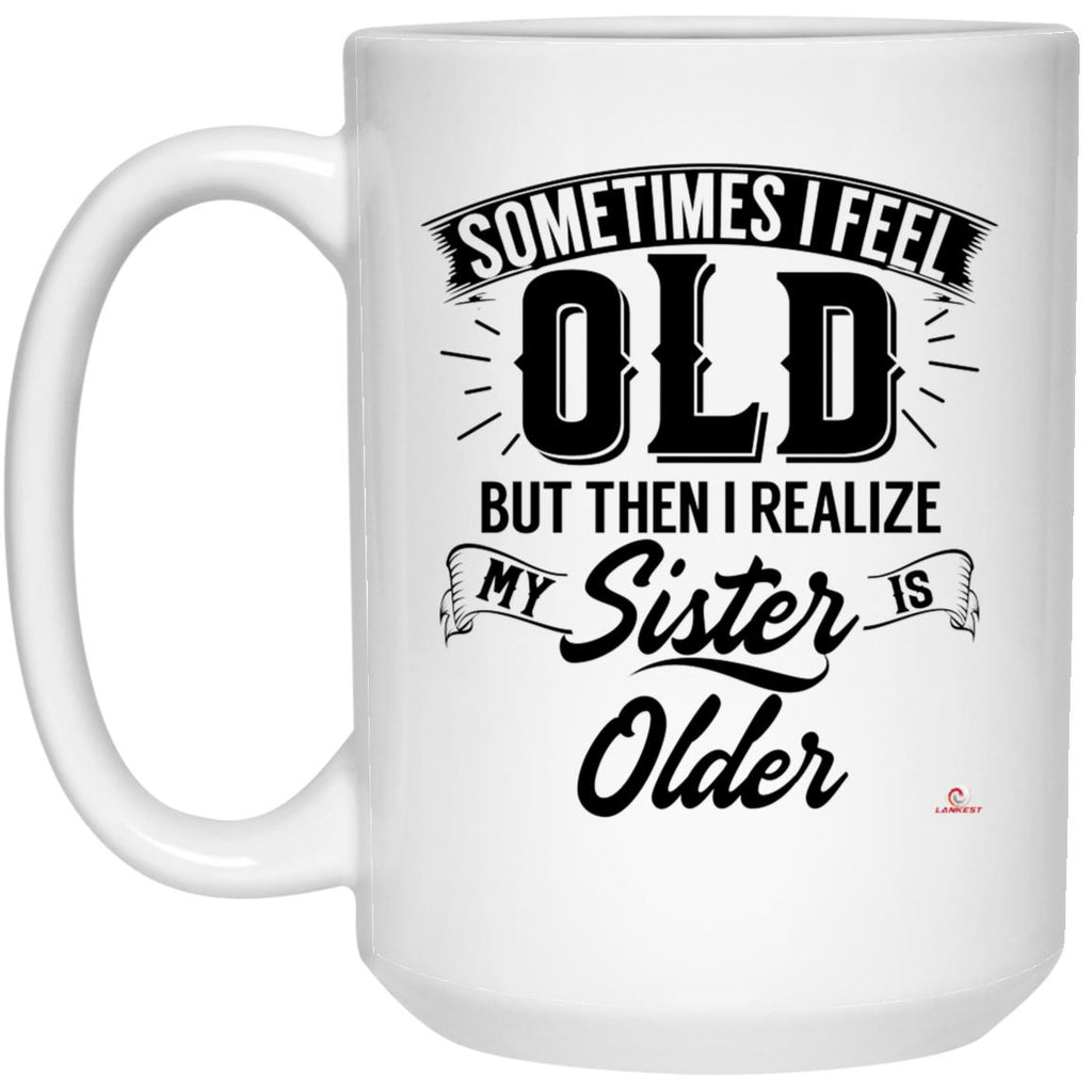 ODDITEES Funny Sister Birthday Mug Sometimes I Feel Old but Realize My Sister Is Older Coffee Cup 15oz White 21504