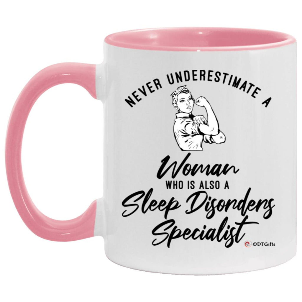Sleep Disorders Specialist Mug Never Underestimate A Woman Who Is Also A Sleep Disorders Specialist Coffee Cup Two Tone Pink 11oz  High quality ceramic mug with two-tone rim, interior, & handle Top to bottom full wrap...