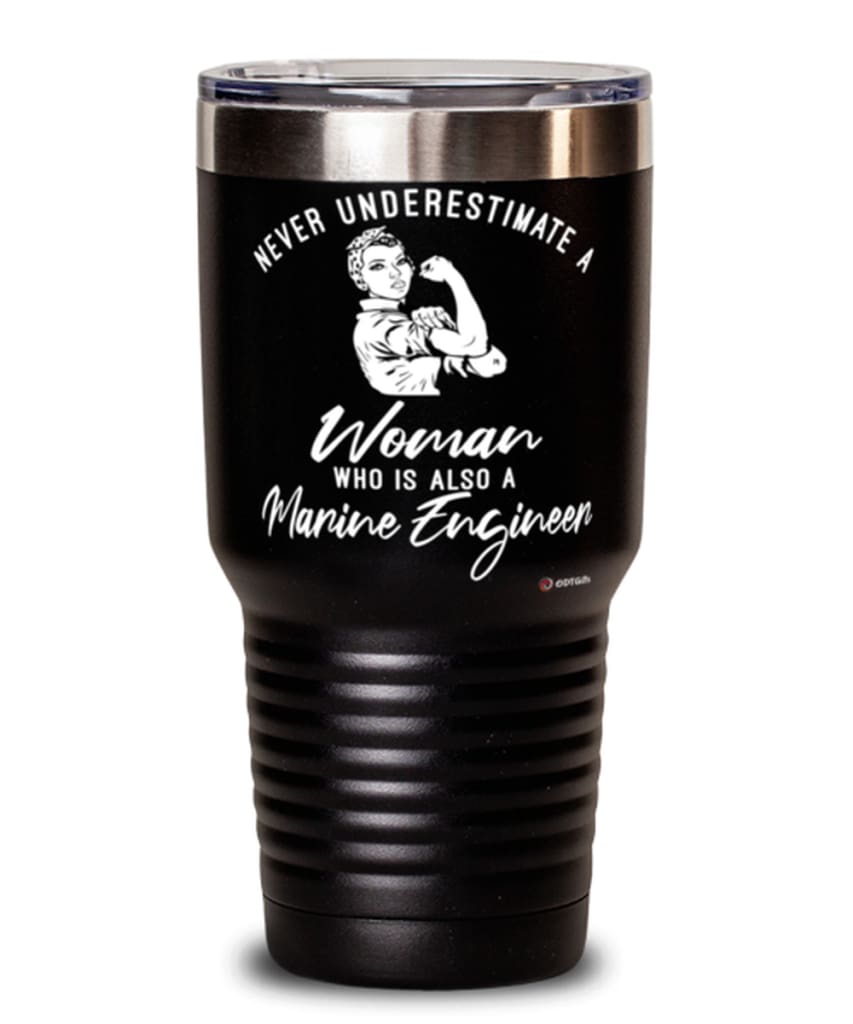 Marine Engineer Tumbler Never Underestimate A Woman Who Is Also A Marine Engineer 30oz Stainless Steel Black