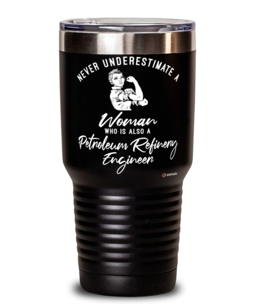 Petroleum Refinery Engineer Tumbler Never Underestimate A Woman Who Is Also A Petroleum Refinery Engineer 30oz Stainless Steel Black