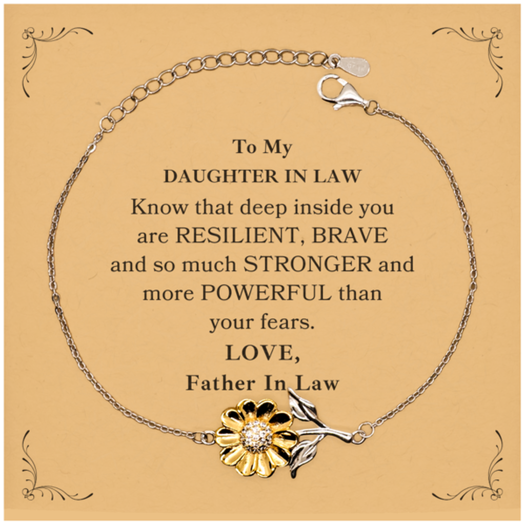 Daughter In Law, You're Brave and so much Stronger Sunflower Bracelet with Card. Gift for Daughter In Law. Christmas Motivational Gift From Father In Law. Best Idea Gift for Birthday