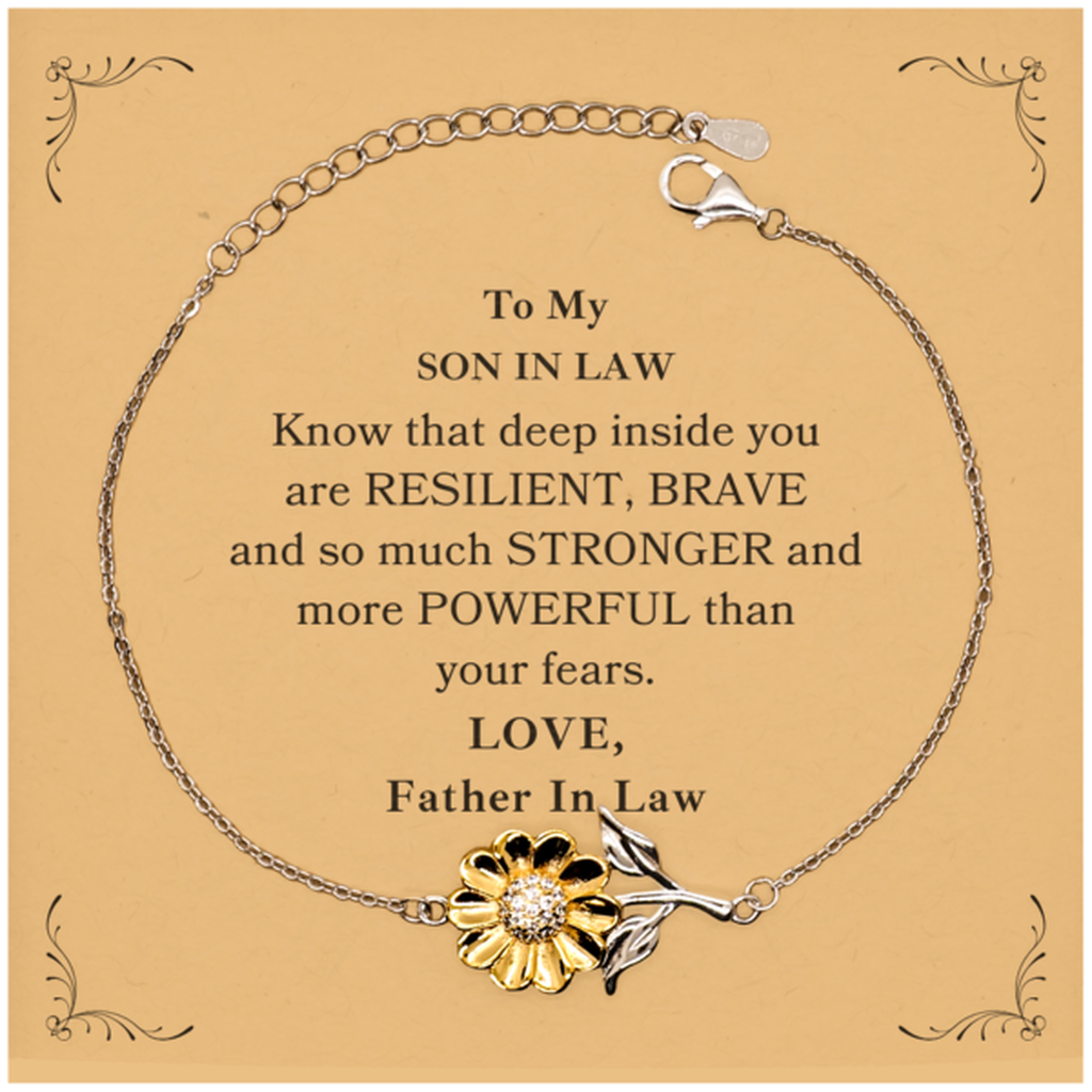Son In Law, You're Brave and so much Stronger Sunflower Bracelet with Card. Gift for Son In Law. Christmas Motivational Gift From Father In Law. Best Idea Gift for Birthday