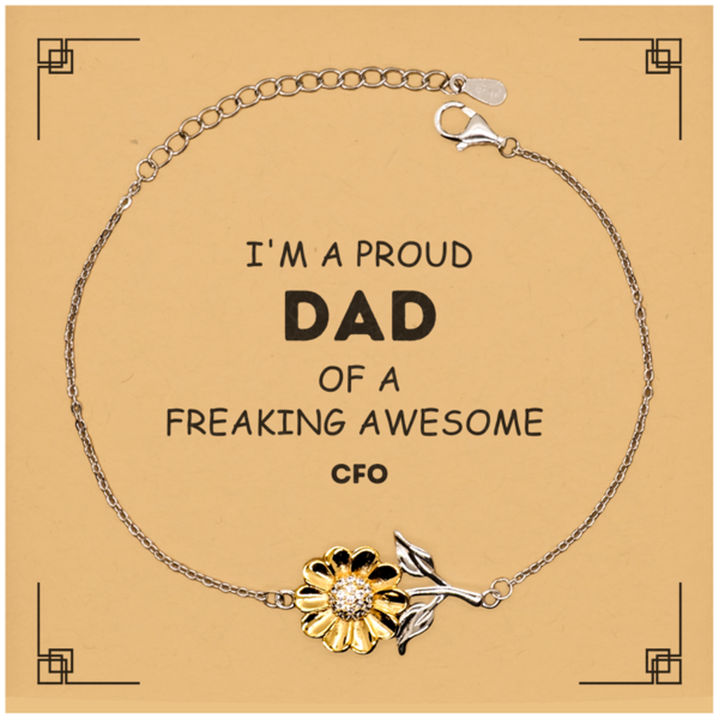 CFO Gifts. Proud Dad of a freaking Awesome CFO. Sunflower Bracelet with Card for CFO. Great Gift for Him. Fathers Day Gift. Unique Dad Jewelry