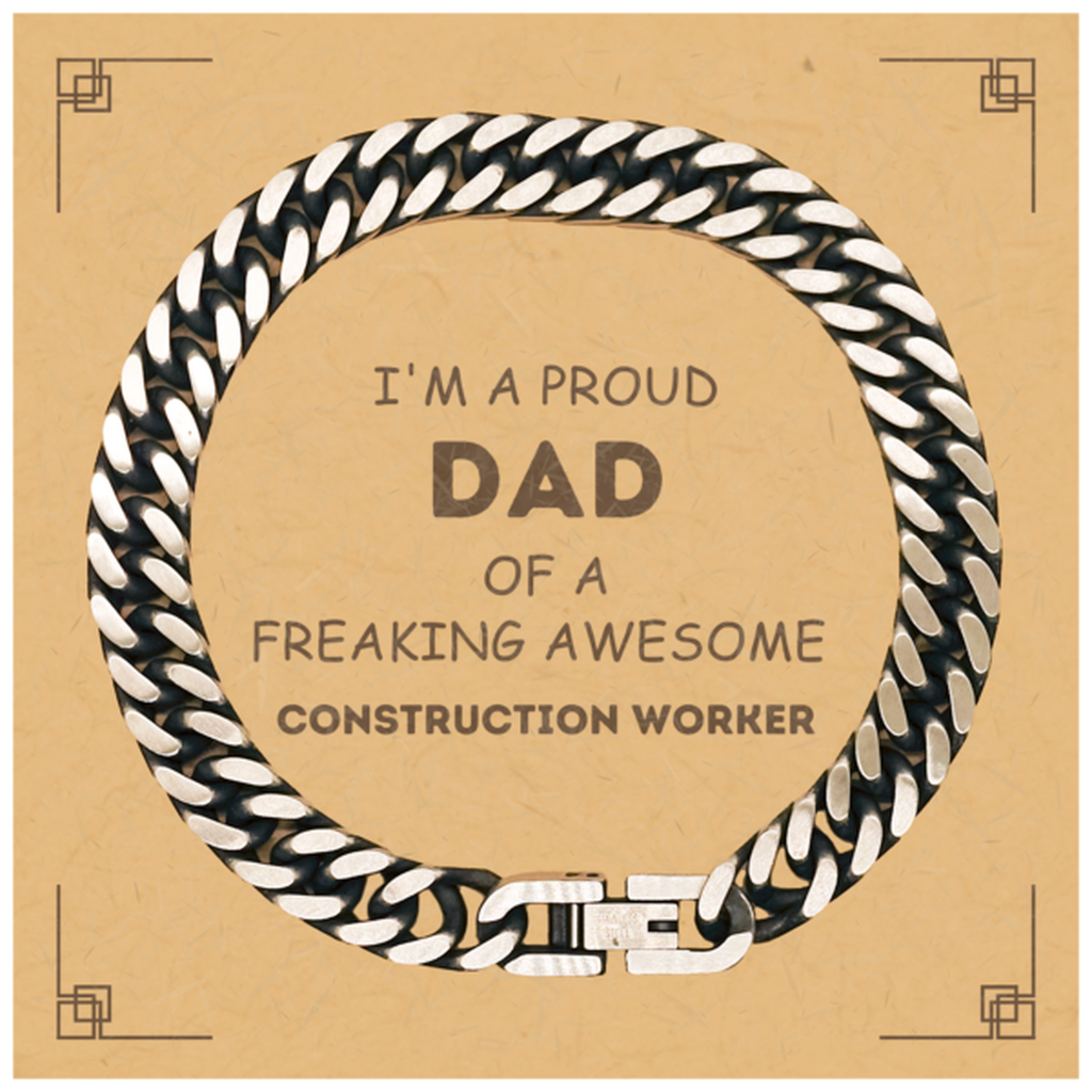 Construction Worker Gifts. Proud Dad of a freaking Awesome Construction Worker. Cuban Link Chain Bracelet with Card for Construction Worker. Great Gift for Him. Fathers Day Gift. Unique Dad Jewelry