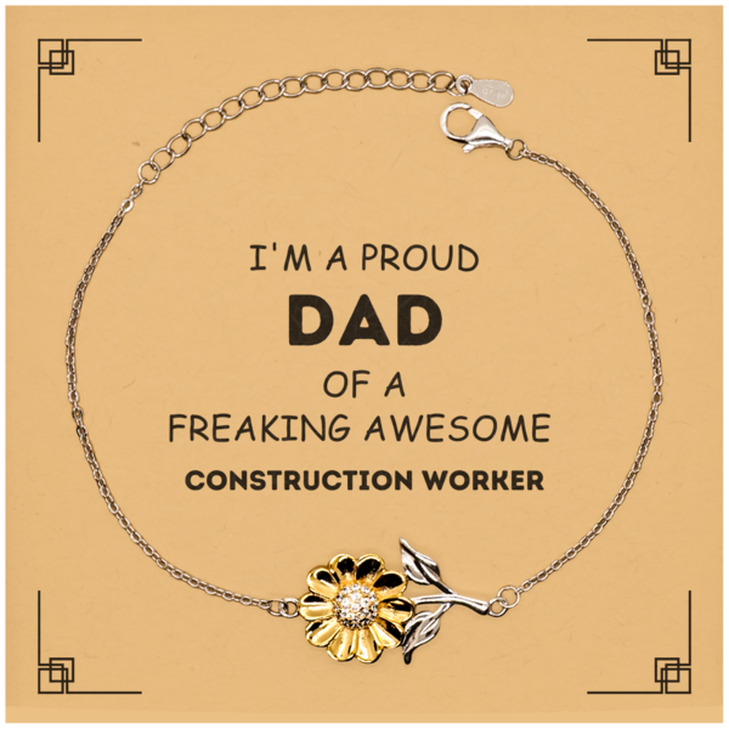 Construction Worker Gifts. Proud Dad of a freaking Awesome Construction Worker. Sunflower Bracelet with Card for Construction Worker. Great Gift for Him. Fathers Day Gift. Unique Dad Jewelry