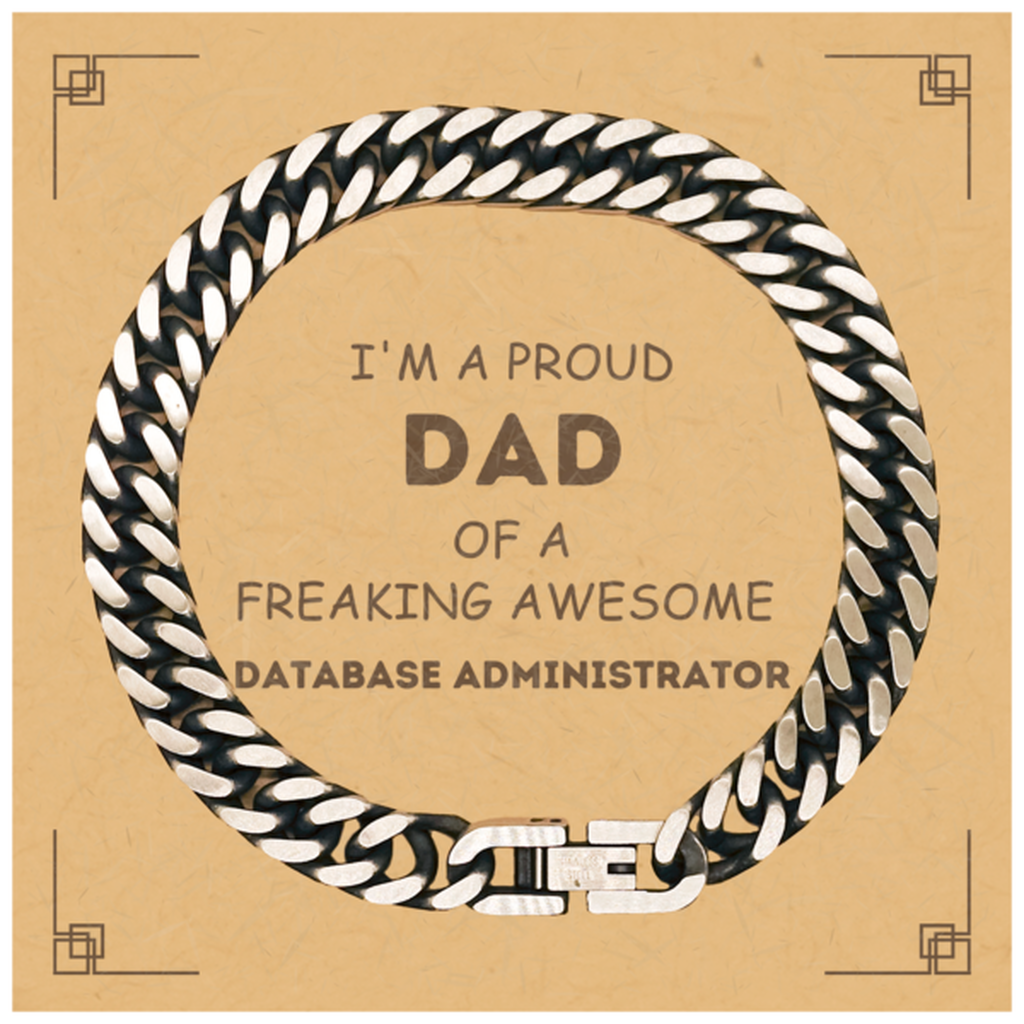 Surprise and delight your special gentleman with a gift that combines style, quality, and sentiment. Elevate his style with this Database Administrator Stainless Steel Cuban Link Chain Bracelet and make every moment memorable.