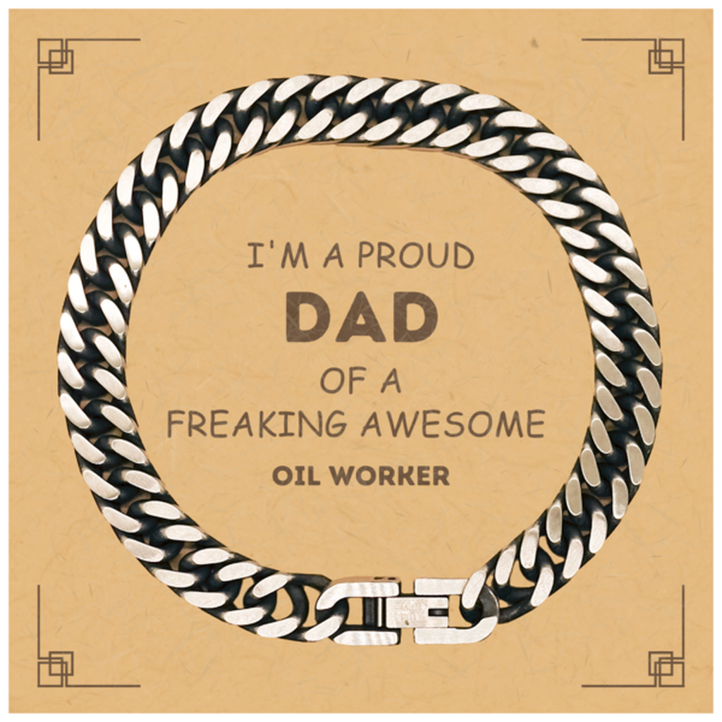 Oil Worker Gifts. Proud Dad of a freaking Awesome Oil Worker. Cuban Link Chain Bracelet with Card for Oil Worker. Great Gift for Him. Fathers Day Gift. Unique Dad Jewelry