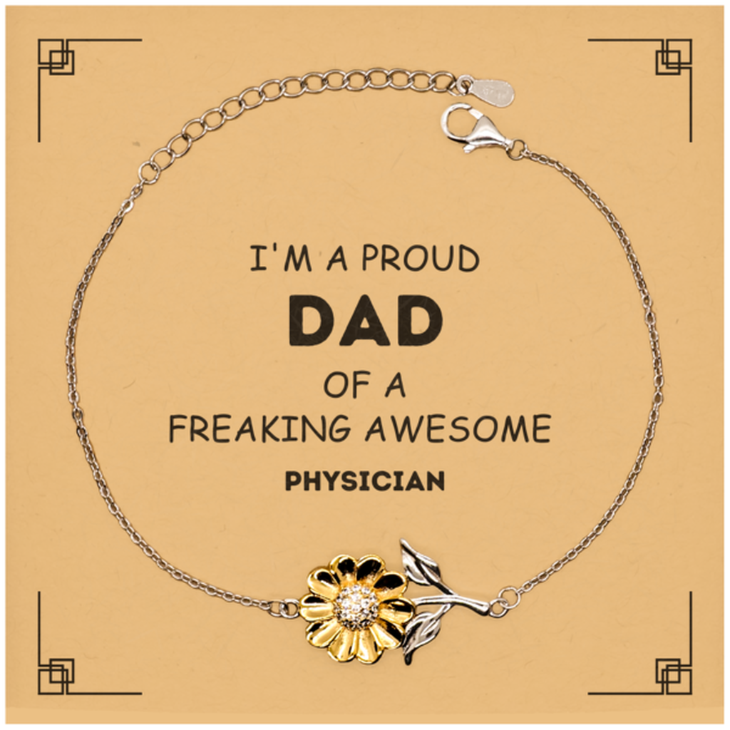 Physician Gifts. Proud Dad of a freaking Awesome Physician. Sunflower Bracelet with Card for Physician. Great Gift for Him. Fathers Day Gift. Unique Dad Jewelry