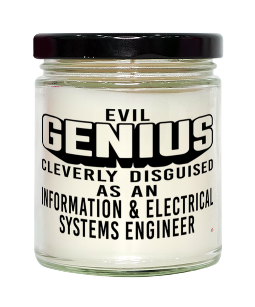 Funny Information Electrical Systems Engineer Candle Evil Genius Cleverly Disguised As An Information and Electrical Systems Engineer 9oz Vanilla Scented Candles Soy Wax