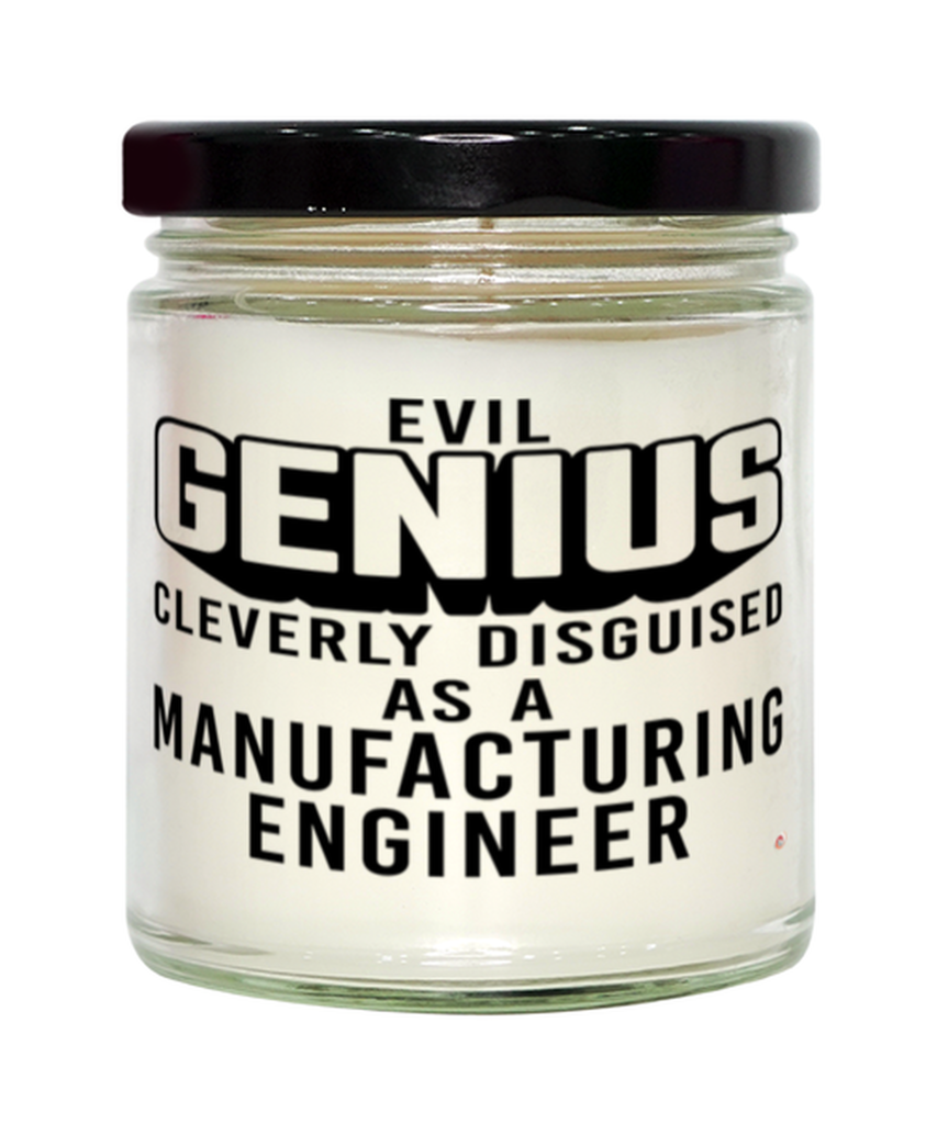 Funny Manufacturing Engineer Candle Evil Genius Cleverly Disguised As A Manufacturing Engineer 9oz Vanilla Scented Candles Soy Wax
