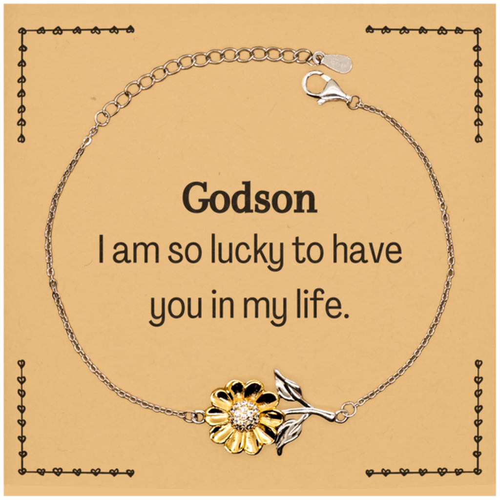 Gifts for Godson, I am so lucky to have you in my life, Thank You Sunflower Bracelet For Godson, Birthday Christmas Inspiration Gifts for Godson