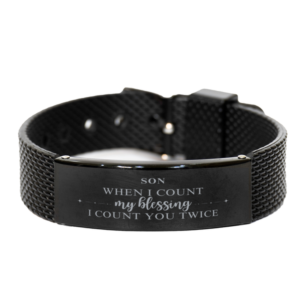 Religious Gifts for Son, God Bless You. Christian Black Shark Mesh Bracelet for Son. Christmas Faith Gift for Son