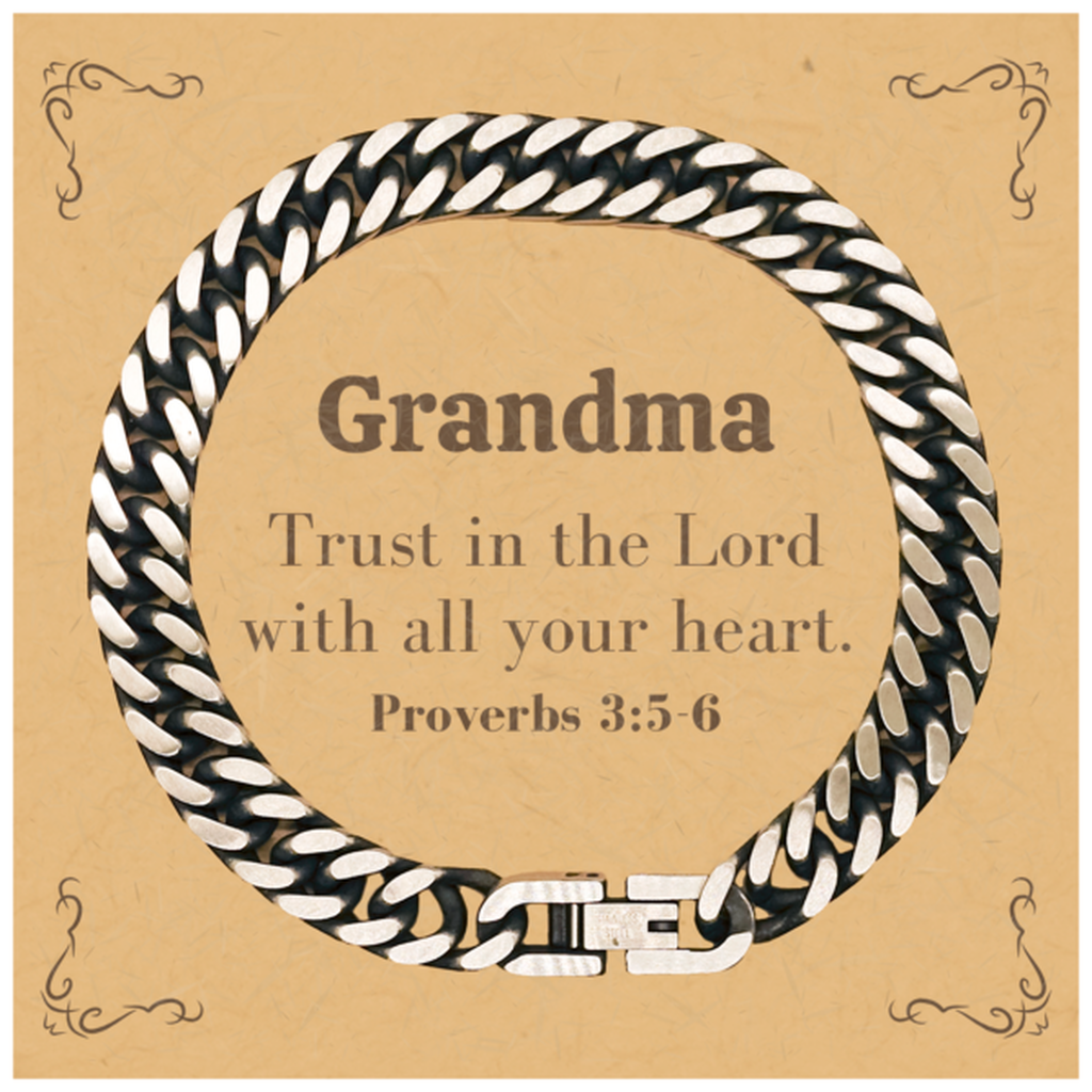 Christian Grandma Gifts, Trust in the Lord with all your heart, Bible Verse Scripture Cuban Link Chain Bracelet, Baptism Confirmation Gifts for Grandma