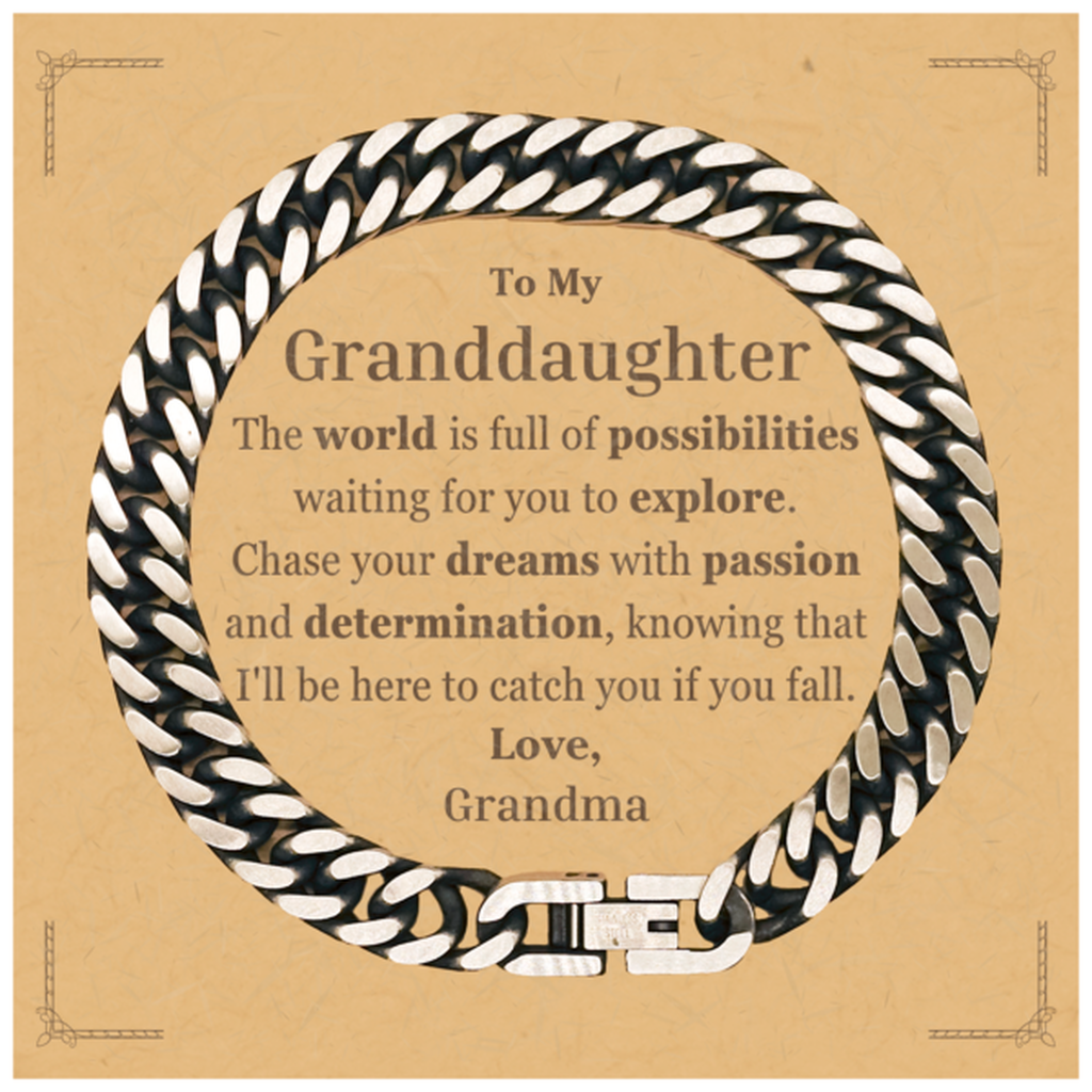 To My Granddaughter Supporting Cuban Link Chain Bracelet, The world is full of possibilities waiting, Birthday Inspirational Gifts for Granddaughter from Grandma