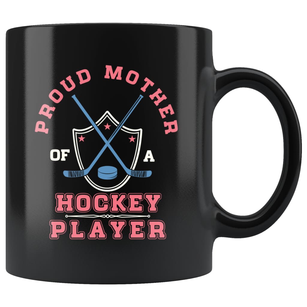 Mug states Proud Mother Of A Hockey Player.This high quality 11oz. ceramic black mug has a premium hard coat providing a crisp and vibrant color reproduction that will last for years. With a high gloss premium black...