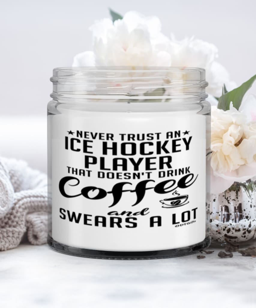 Funny Ice Hockey Candle Never Trust An Ice Hockey Player That Doesn't Drink Coffee and Swears A Lot 9oz Vanilla Scented Candles Soy Wax