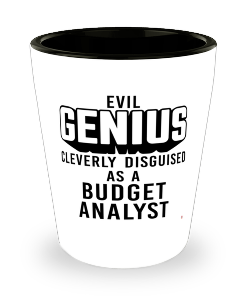 Funny Budget Analyst Shot Glass Evil Genius Cleverly Disguised As A Budget Analyst