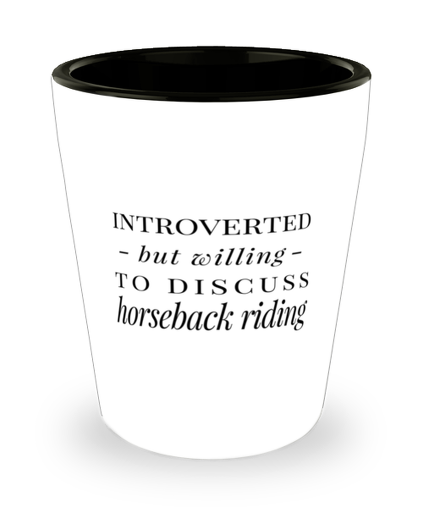 - Stylish 1.5 ounce Horseback Riding shot glass with a sleek white exterior and contrasting black interior
