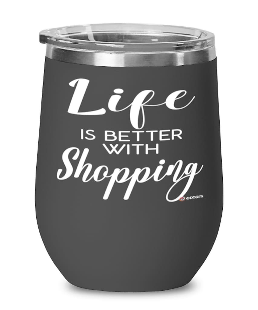Funny Shopper Wine Glass Life Is Better With Shopping 12oz Stainless Steel Black