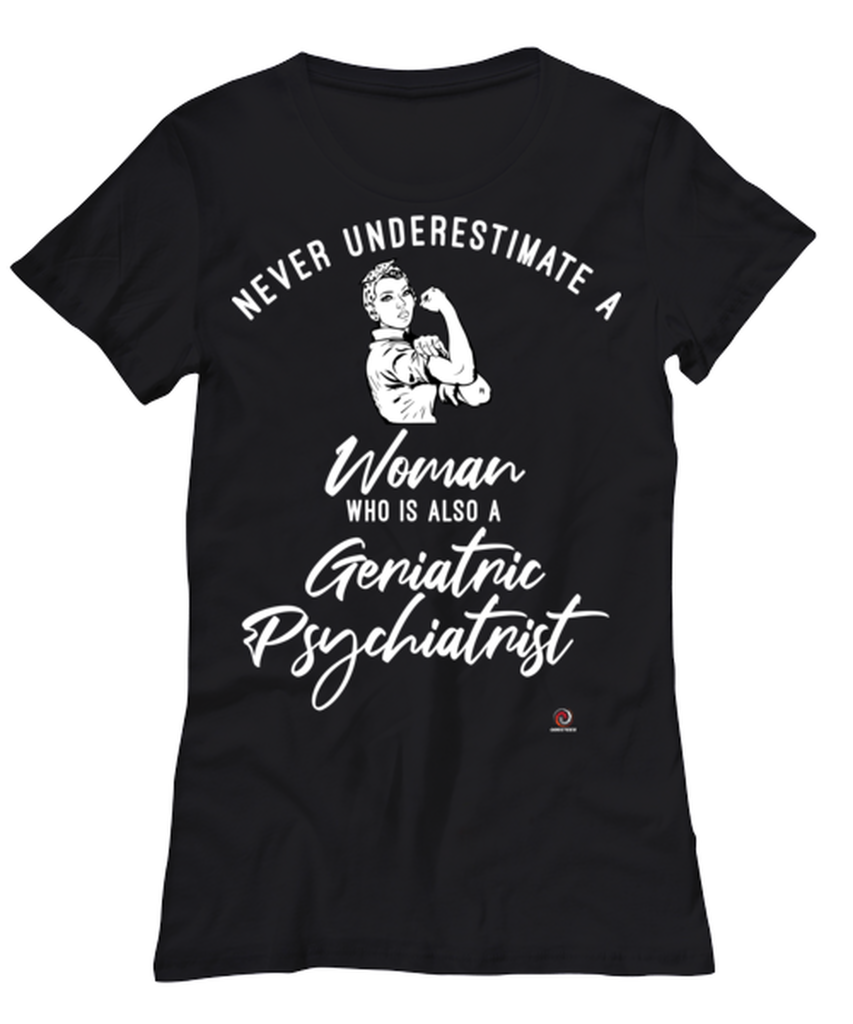 Geriatric Psychiatrist T-shirt Never Underestimate A Woman Who Is Also A Geriatric Psychiatrist Womens T-Shirt Black