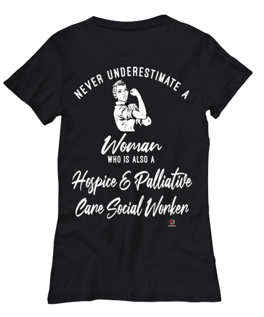 Hospice Palliative Care Social Worker T-shirt Never Underestimate A Woman Who Is Also A Hosp Palliat Care Social Worker Womens T-Shirt Black