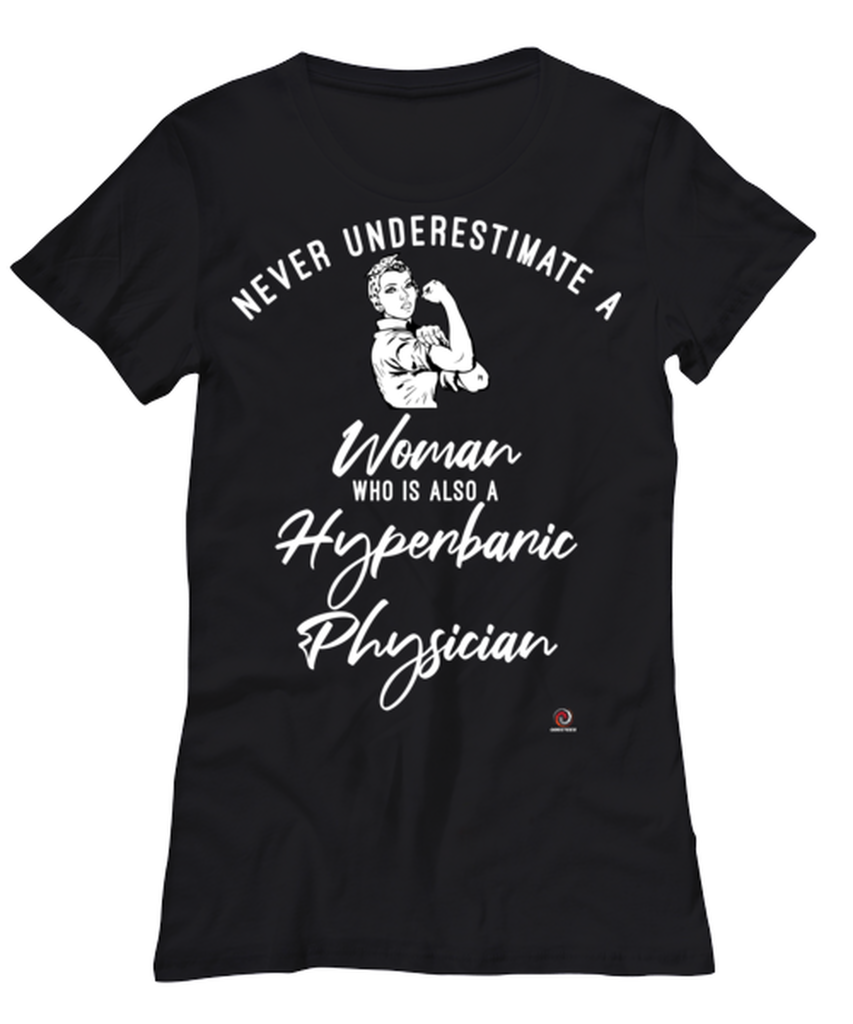 Hyperbaric Physician T-shirt Never Underestimate A Woman Who Is Also A Hyperbaric Physician Womens T-Shirt Black