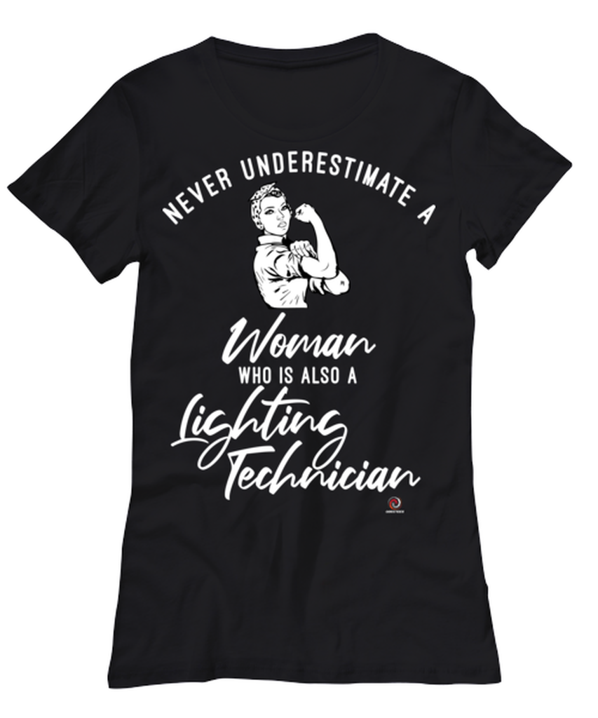 Lighting Technician T-shirt Never Underestimate A Woman Who Is Also A Lighting Tech Womens T-Shirt Black