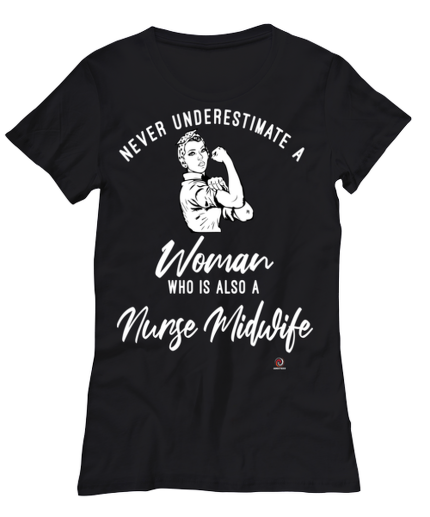 Nurse Midwife T-shirt Never Underestimate A Woman Who Is Also A Nurse Midwife Womens T-Shirt Black