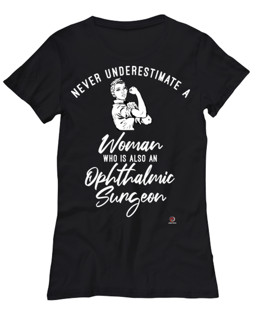 Ophthalmic Surgeon T-shirt Never Underestimate A Woman Who Is Also An Ophthalmic Surgeon Womens T-Shirt Black