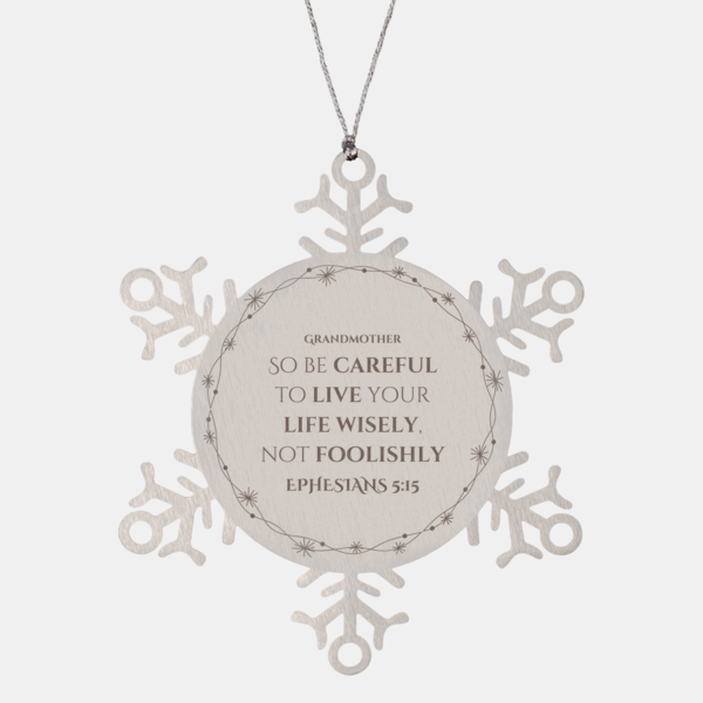 Drape this exquisite Grandmother Snowflake Ornament on your tree and watch as it shimmers and sparkles, creating a magical ambiance in your home. Made from high-quality stainless steel, it's not only a symbol of beauty but also durability. Even in the unfortunate event of a fall from the tree, it remains shatterproof, ensuring that your treasured ornament will last for generations.