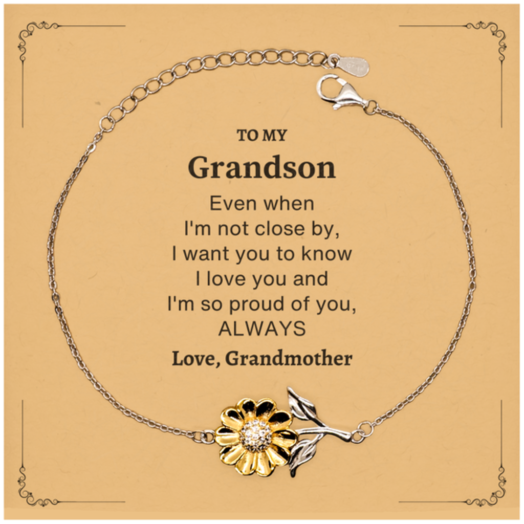 Grandson Gifts from Grandmother, Graduation Birhday Grandson Sunflower Bracelet Long Distance Relationship Gifts for Grandson Even when I'm not close by, I want you to know I love you. Love, Grandmother