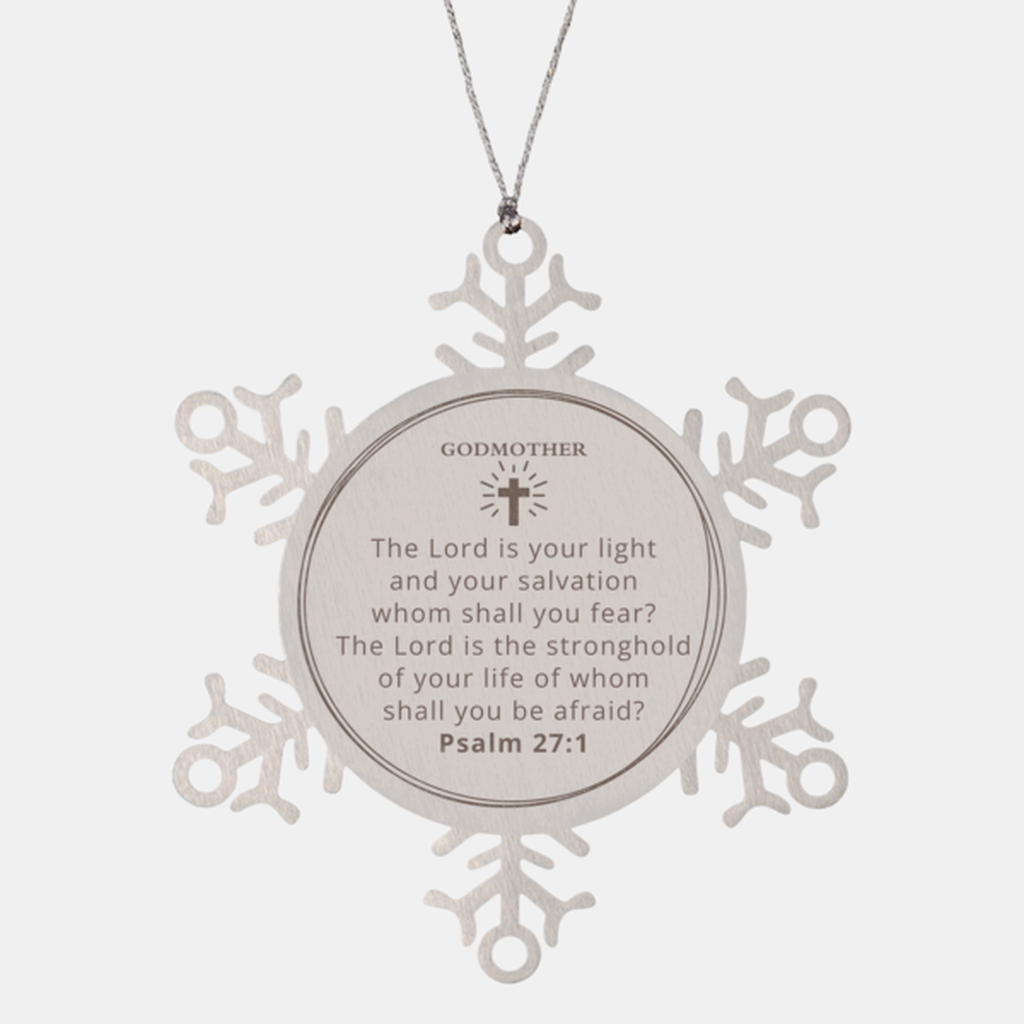 Snowflake Ornament Godmother - Engraved Psalm 27:1 Inspirational Christmas Gift for Godmother - Godmother Snowflake Ornament - A Meaningful and Unique Christmas Gift for Godmother