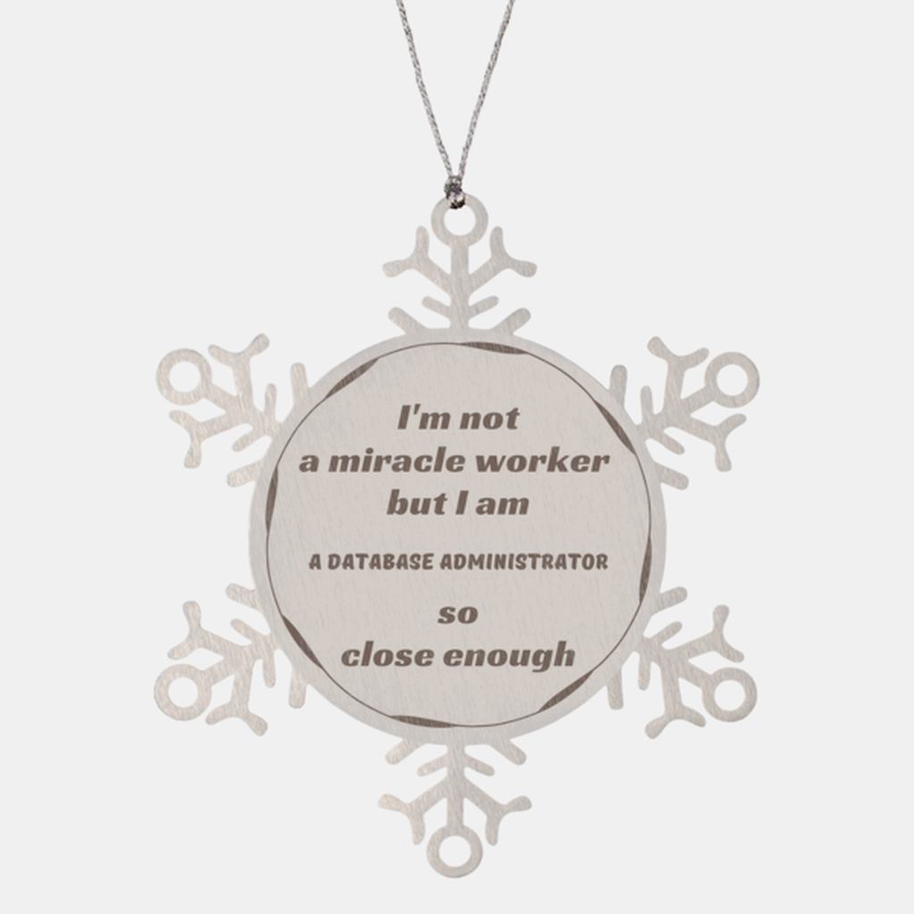 Drape this exquisite Database Administrator Snowflake Ornament on your tree and watch as it shimmers and sparkles, creating a magical ambiance in your home. Made from high-quality stainless steel, it's not only a symbol of beauty but also durability. Even in the unfortunate event of a fall from the tree, it remains shatterproof, ensuring that your treasured ornament will last for generations.