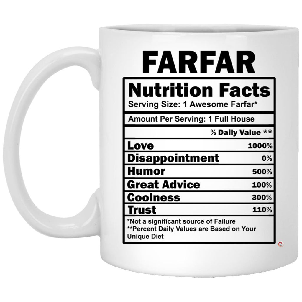 ODDITEES Funny Farfar Mug Farfar Nutrition Facts Coffee Cup 11oz White High quality white gloss 11oz ceramic mug Dishwasher safe & Microwave safe Top-to-bottom full wrap dye sublimation AAA ORCA Coating™ for maximum print vibrancy &...