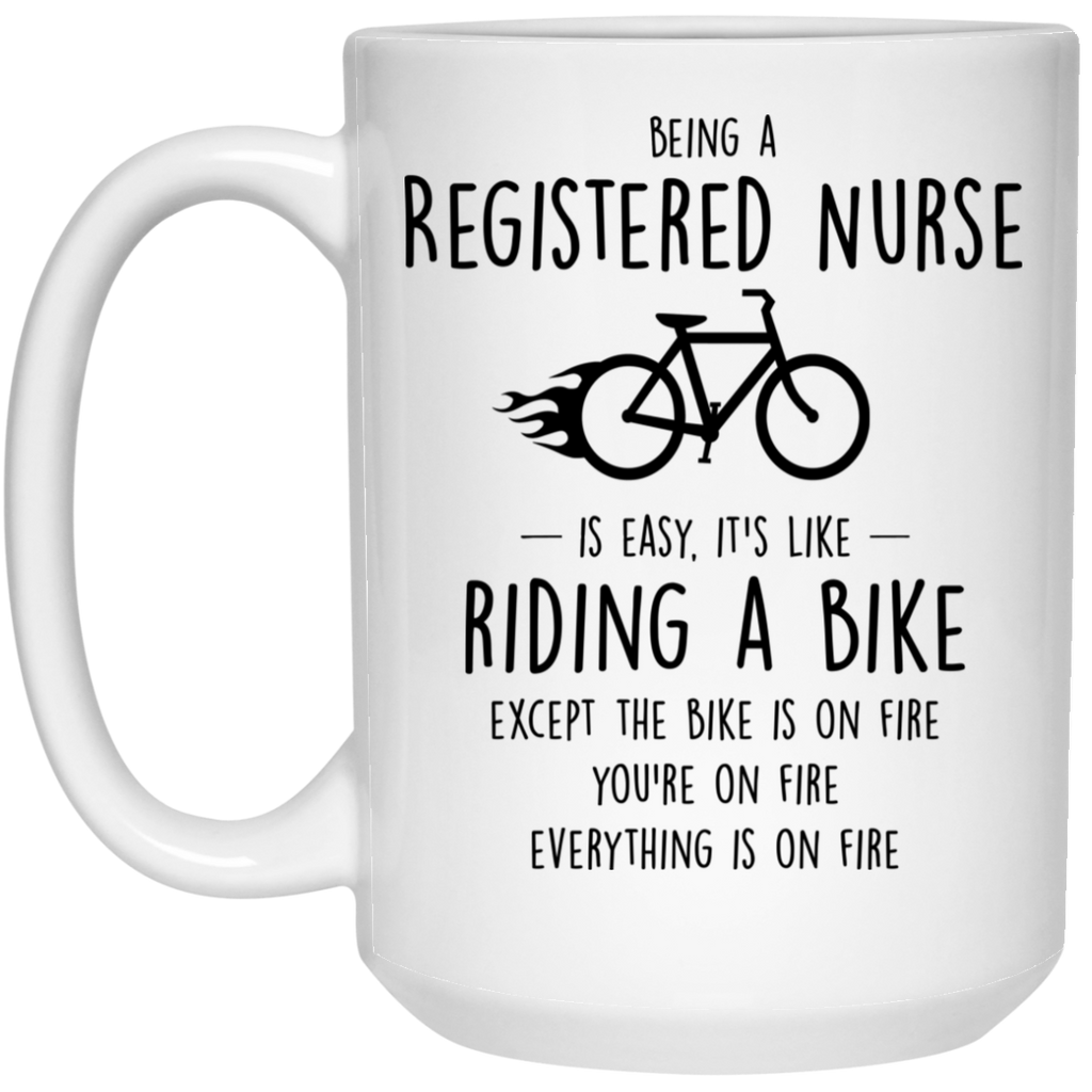 Funny Being A Registered Nurse Is Easy It's Like Riding A Bike Except Coffee Mug 15oz White  High quality 15oz white gloss ceramic mug Top to bottom full wrap decoration Microwave & Dishwasher safe ORCA Coating™...