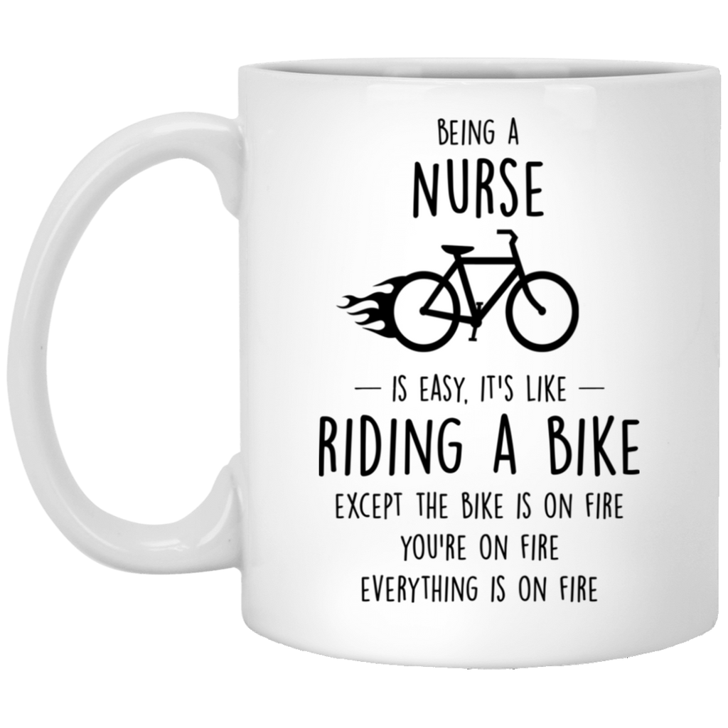 Funny Nurse Mug Being A Nurse Is Easy It's Like Riding A Bike Except Coffee Cup 11oz White XP8434