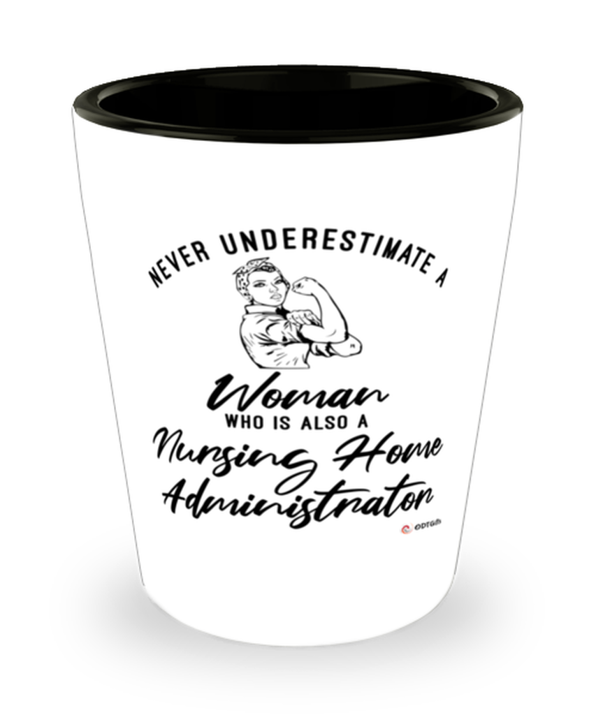 Nursing Home Administrator Shotglass Never Underestimate A Woman Who Is Also A Nursing Home Administrator Shot Glass