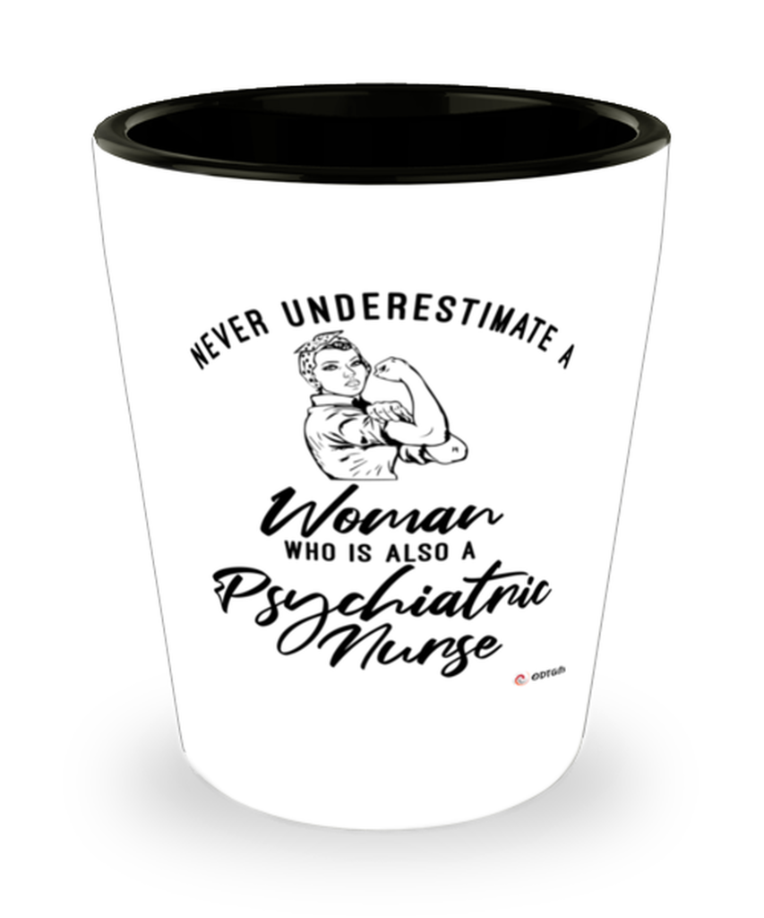 Psychiatric Nurse Shotglass Never Underestimate A Woman Who Is Also A Psychiatric Nurse Shot Glass