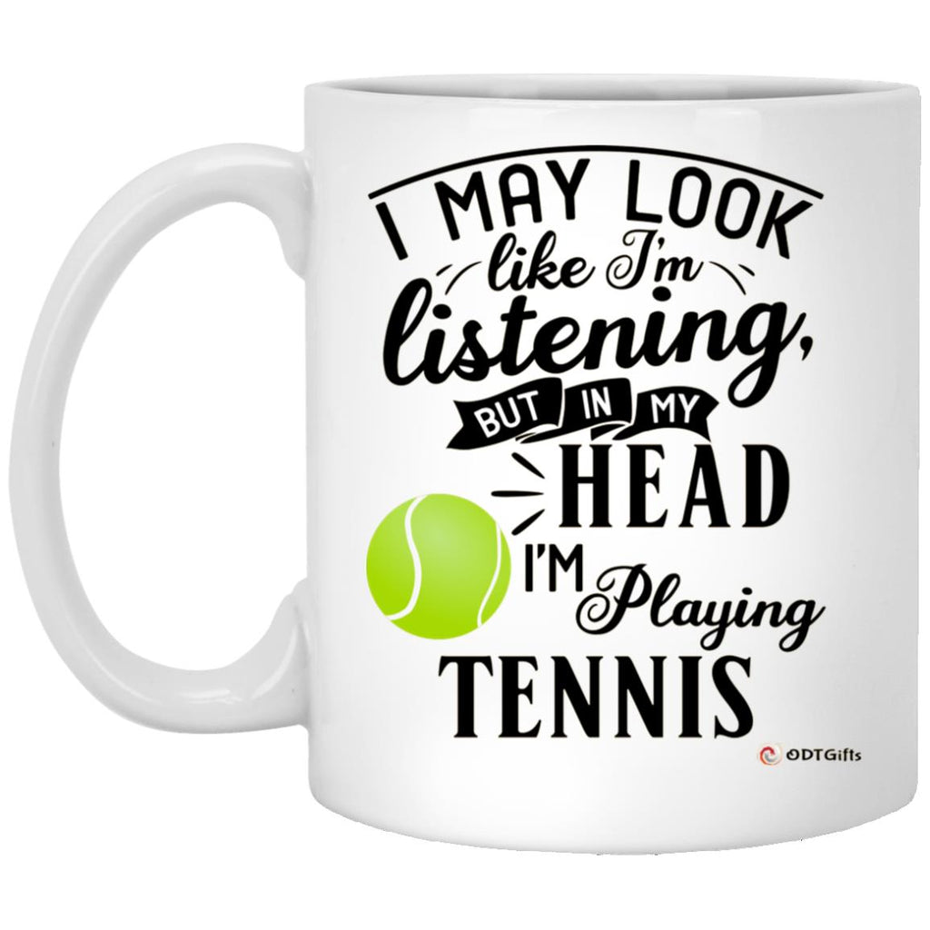 Funny Tennis Mug I May Look Like I'm Listening But In My Head I'm Playing Tennis Coffee Cup 11oz White High quality white gloss 11oz ceramic mug Dishwasher safe & Microwave safe Top-to-bottom full wrap dye...