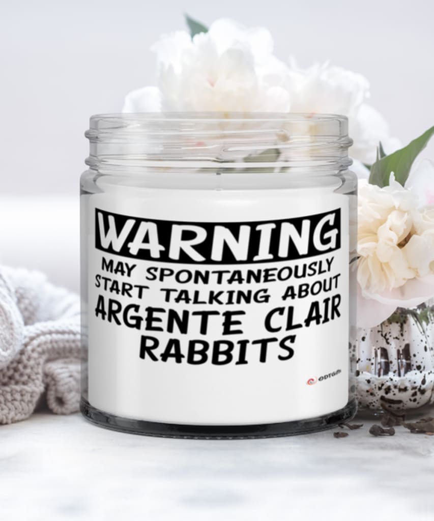 Unique Argente Clair Rabbit Candle Gift. Our 9 ounce hand-poured vanilla-scented Soy Wax Candle is a premium soy candle that uses the finest vanilla fragrances to create an aromatherapy experience from beginning to end. 3” width 3” height....