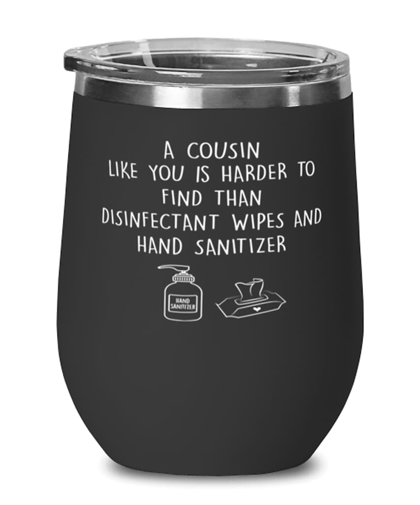 A beautiful stainless steel powder-coated stemless wine glass with a lid for Cousin. It's the perfect gift for wine drinkers! This wine tumbler has a double-wall vacuum insulated for hot and cold liquids, and we engrave each tumbler with top-of-the-line laser technology to ensure precise design and durability. These are perfect party favors for your next event, wedding, family reunion, pool party, picnic, BBQ's, baby shower, birthday, and so much more. Hand wash only, not dishwasher or microwave safe.
