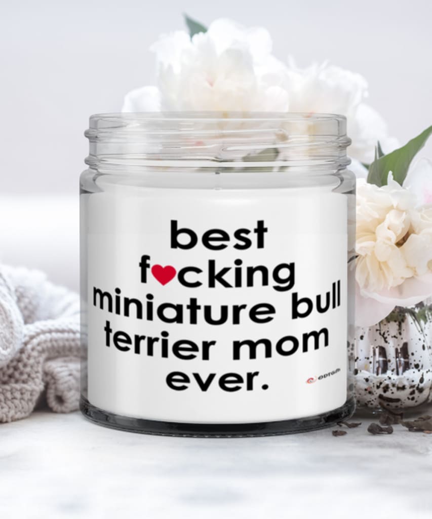 Funny Miniature Bull Terrier Dog Candle B3st F-cking Miniature Bull Terrier Mom Ever 9oz Vanilla Scented Candles Soy Wax