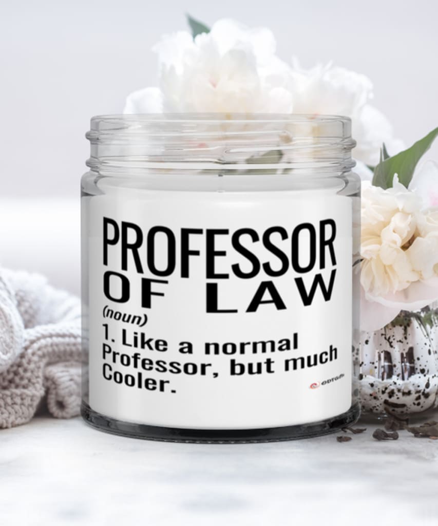 Unique Law Professor Candle Gift. Our 9 ounce hand-poured vanilla-scented Soy Wax Candle is a premium soy candle that uses the finest vanilla fragrances to create an aromatherapy experience from beginning to end. 3” width 3” height. Your...