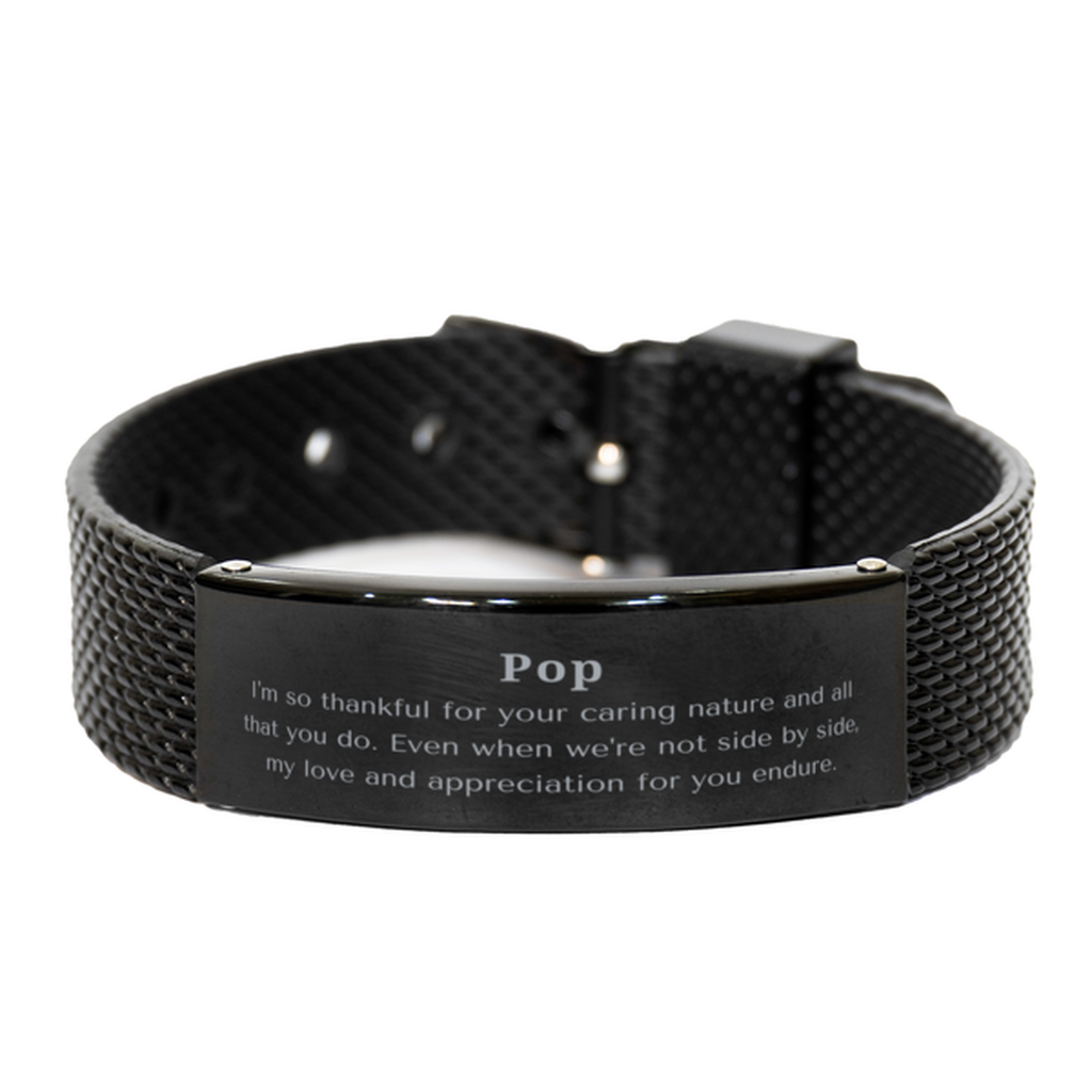 Each Black Engraved Stainless Steel Shark Mesh Bracelet comes elegantly packaged in a black velvet bag, ready to impress the moment it's revealed. Give your Pop lasting style and sentimental value with this remarkable bracelet that's both fashionable and meaningful.