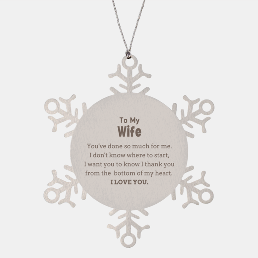 To My Wife Gifts, I thank you from the bottom of my heart, Thank You Snowflake Ornament For Wife, Birthday Christmas Cute Wife Gifts