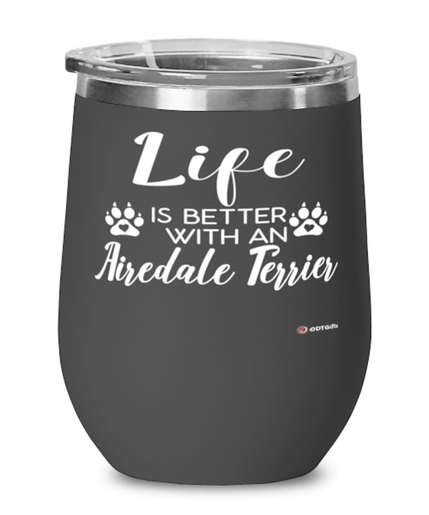 Funny Airedale Terrier Dog Wine Glass Life Is Better With An Airedale Terrier 12oz Stainless Steel